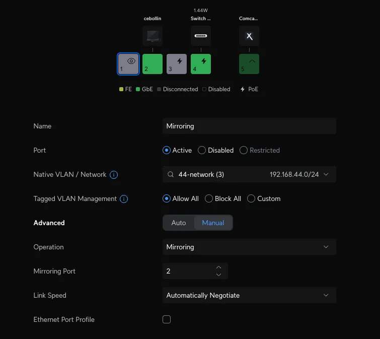 Passthrough Ethernet for mirror