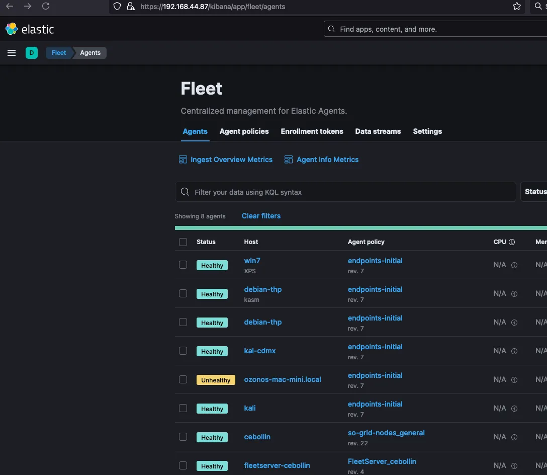 Download the agents and allow them in the firewall