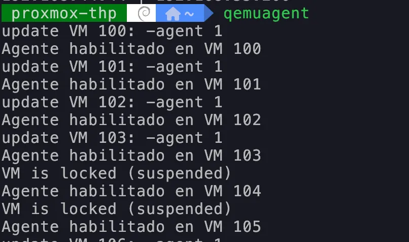 After installing the guest agent in your VMs, you need to enable it in the Proxmox interface for each machine. You can do this manually or use the following script: